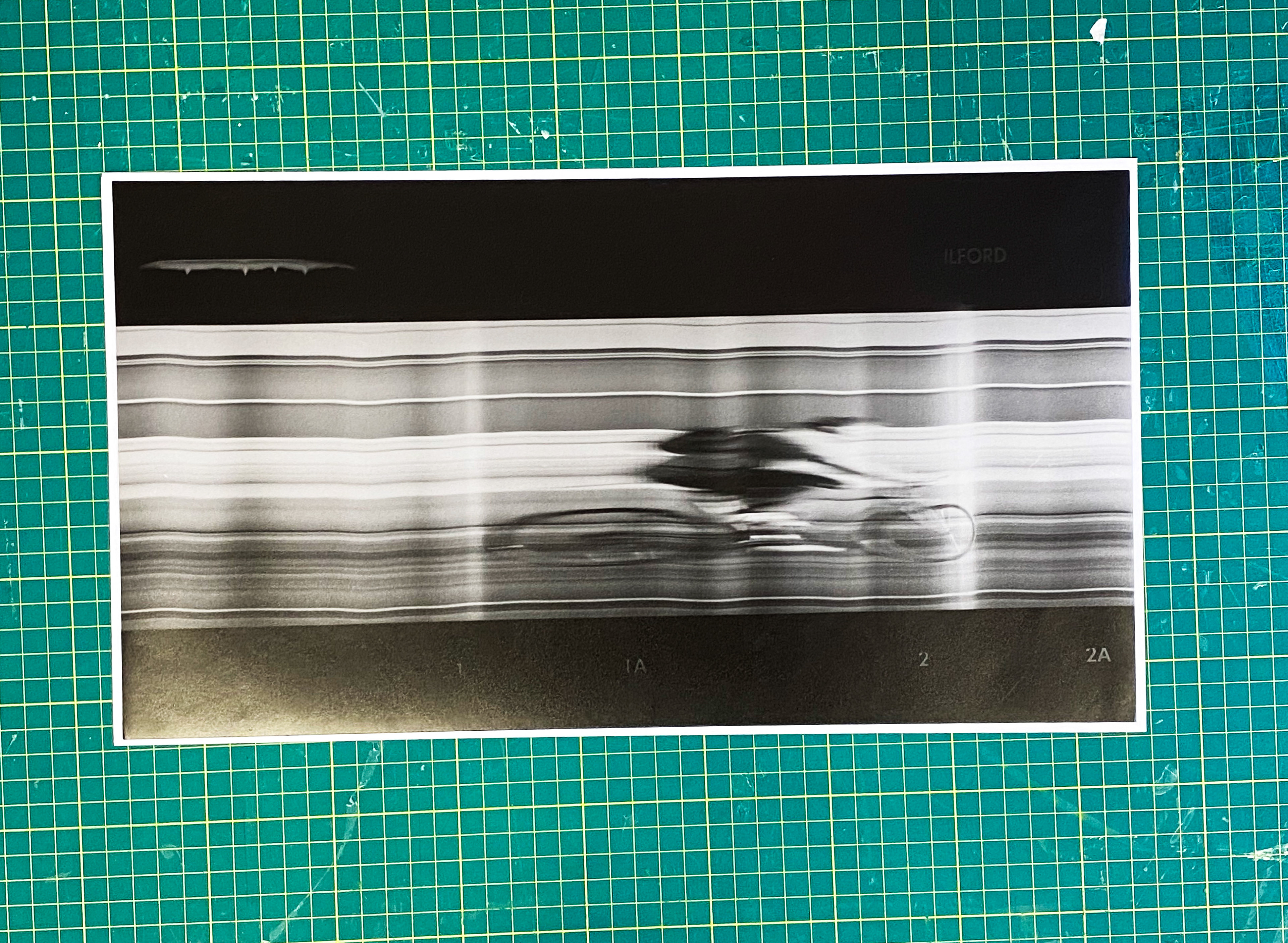 I experimented with a range of different methods but finally chose Slit-scan photography to create my final piece. I used slit-scan photography to capture movement and motion of a cyclist. I wanted to capture the cyclists movement while also distorting the image to create more motion.